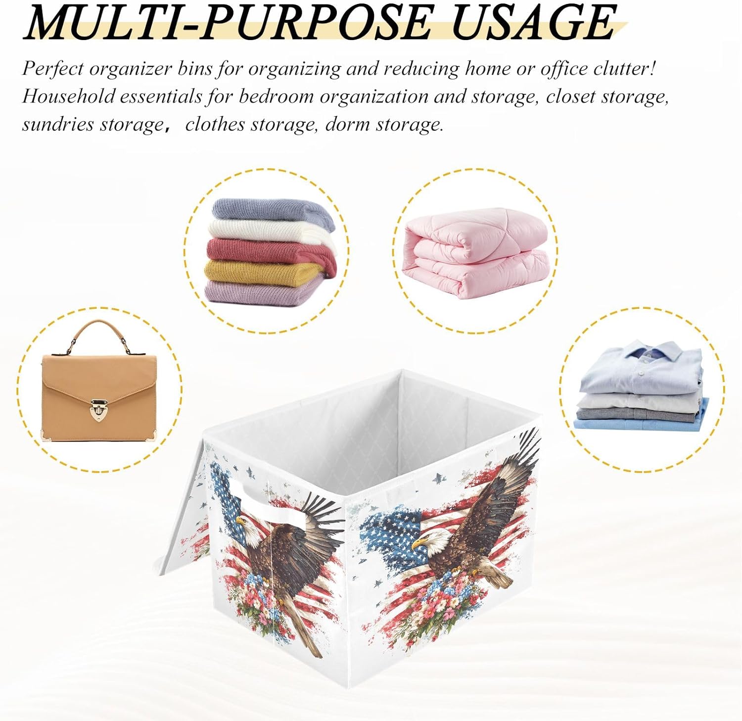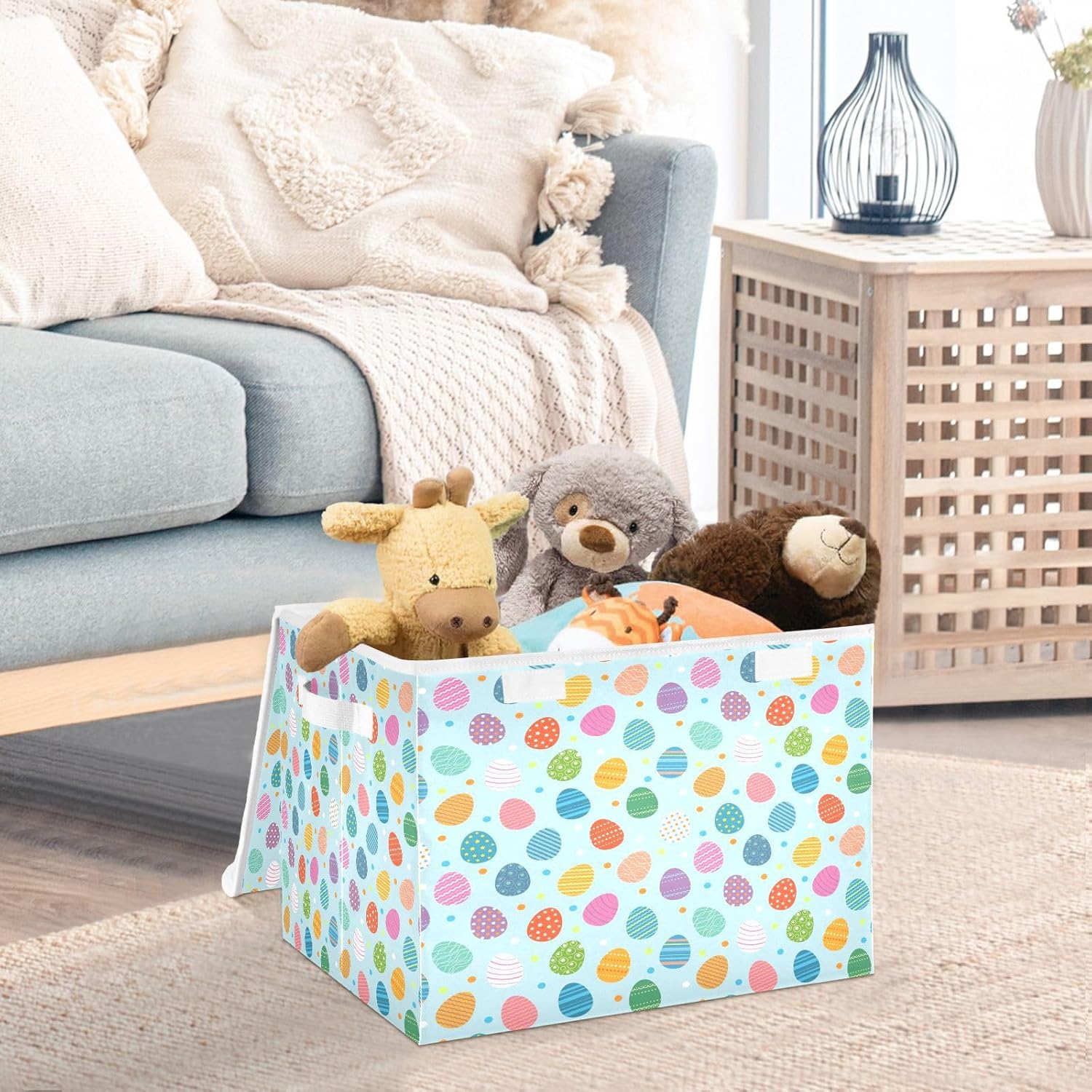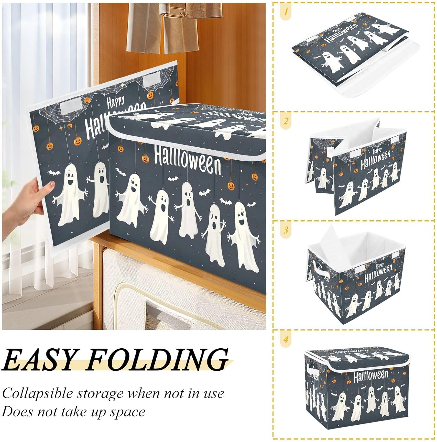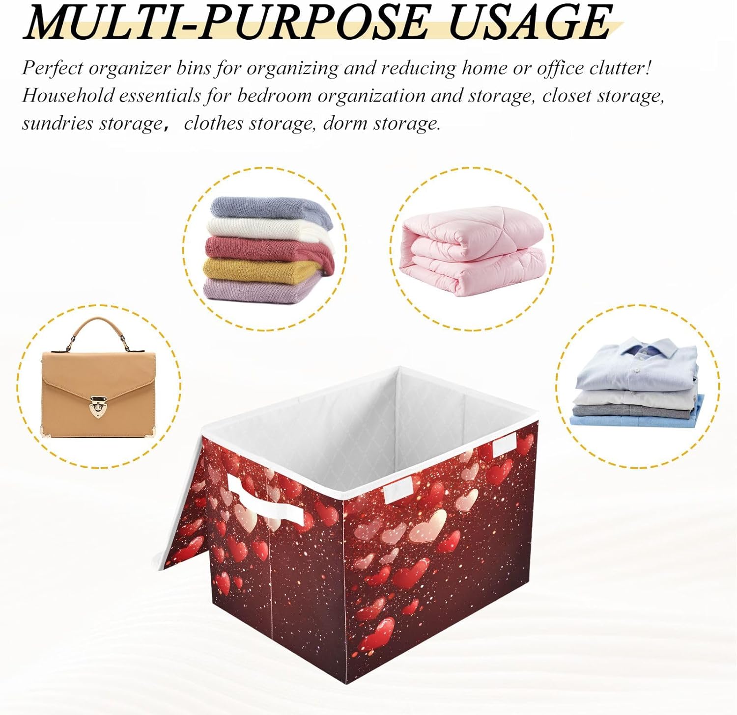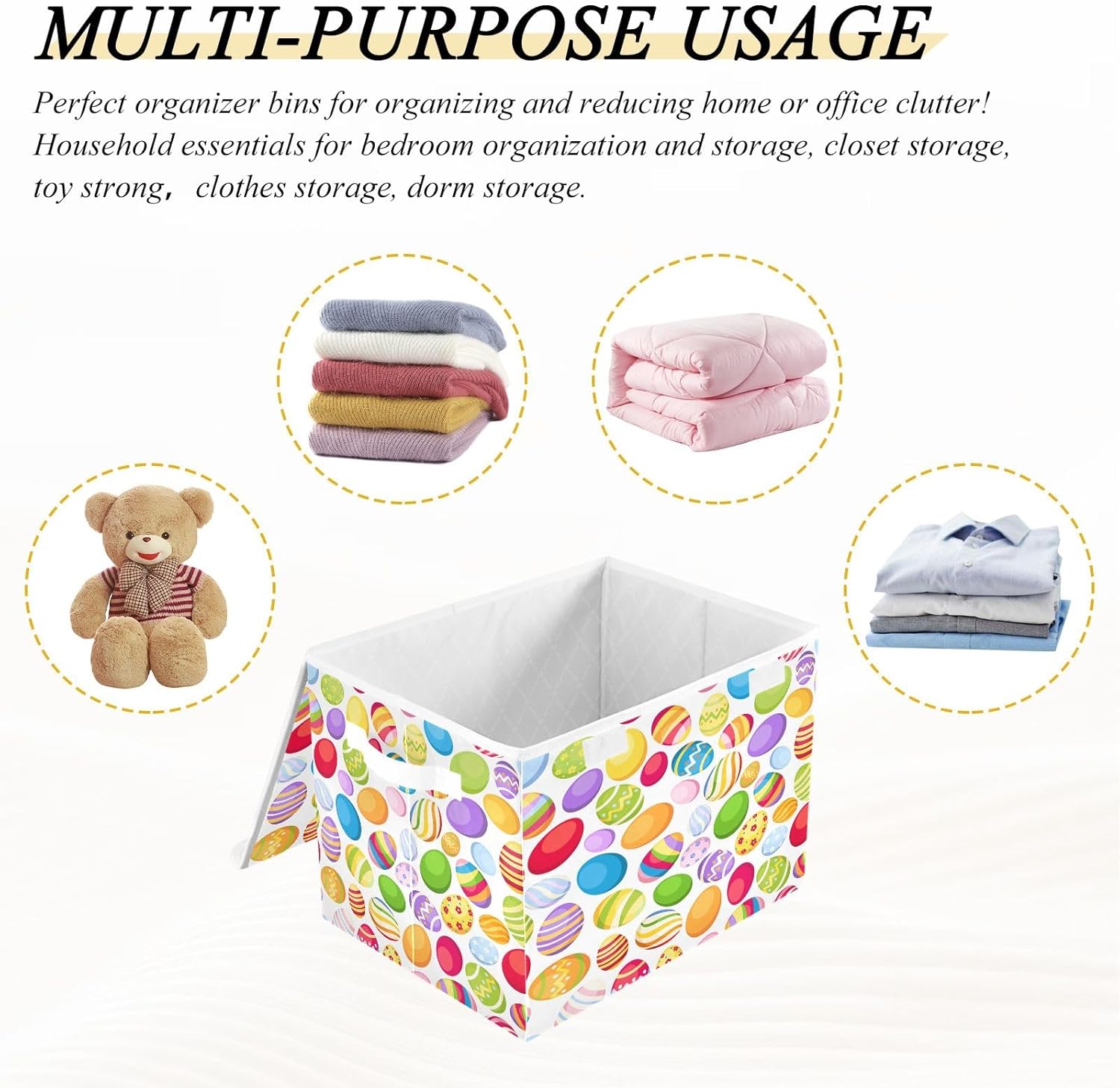 This storage bins with lids is useful for your daily life. Not only suitable for adult, but also suitable for home kitchen and office. Why choose our large foldable organizer box? - Large capacity, can store more stuff. - Sturdy side handles for easy toting. - Collapsible design for convenient storage. - Modern stylish,cute pattern design. - Storage basket with cover design to prevent dust from dust. - Multi-purpose, suitable for any place. Features: - Perfect for kitchen, office, bedroom, living room, rest room, closets and cabinets. It's an excellent choice for keeping your space nice, tidy and organized. -If you have any questions or issues regarding the storage boxes, please do not hesitate to send the seller a message through Amazon we will respond within 24 hours. THIS ITEM IS NOT INTENDED FOR USE BY CHILDREN 12 AND UNDER.