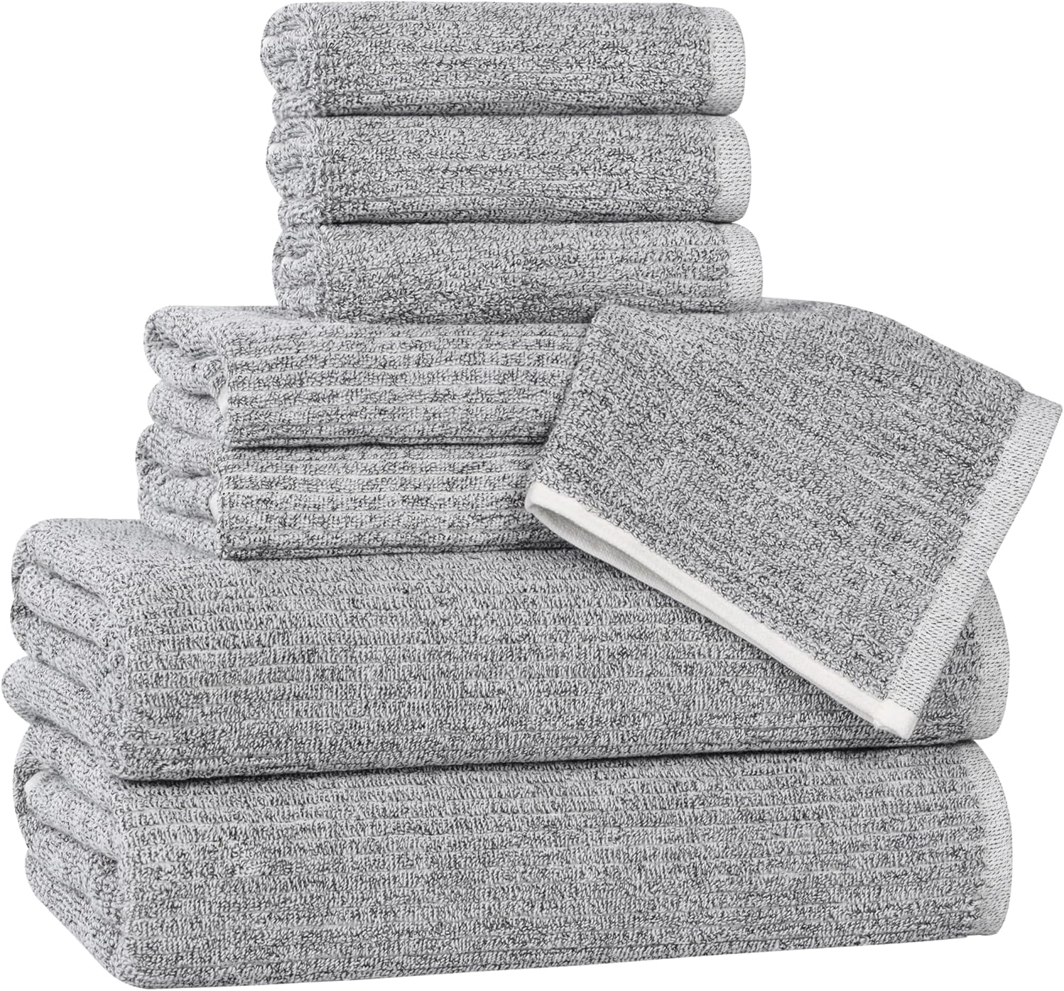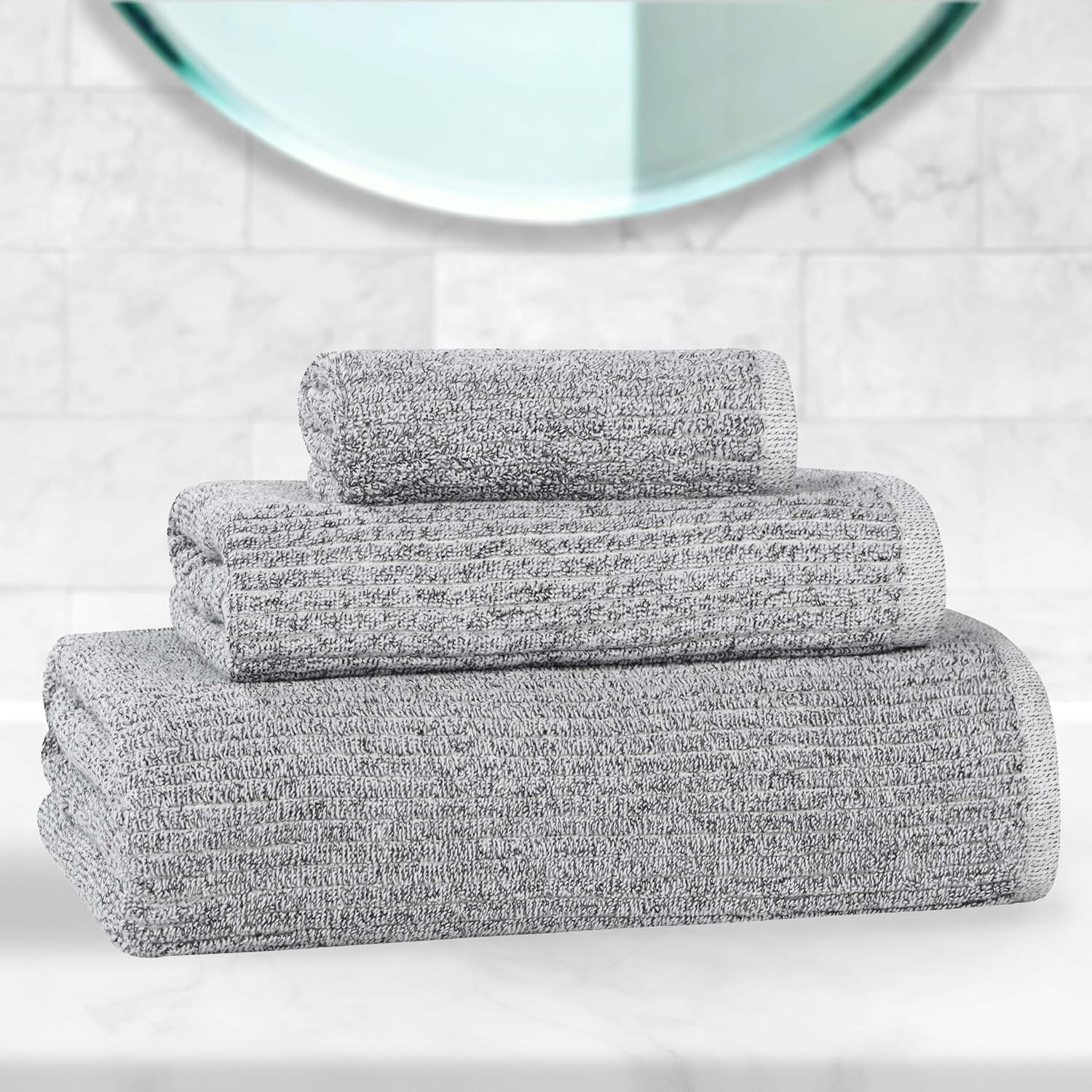 Treat yourself to the softness of the Superior Destin Cotton Blend 9 Piece Towel Set. Crafted from an 80% cotton and 20% viscose blend, these towels feature a sleek ribbed texture that creates a unique and eye-catching design. This bundle artfully blends chic aesthetics with exceptional absorbency, ensuring a soft and gentle touch against your skin. The medium weight design is durable, moisture wicking, and quick drying, while the diverse palette of elegant colors allows you to personalize your bathroom’s aesthetic effortlessly.