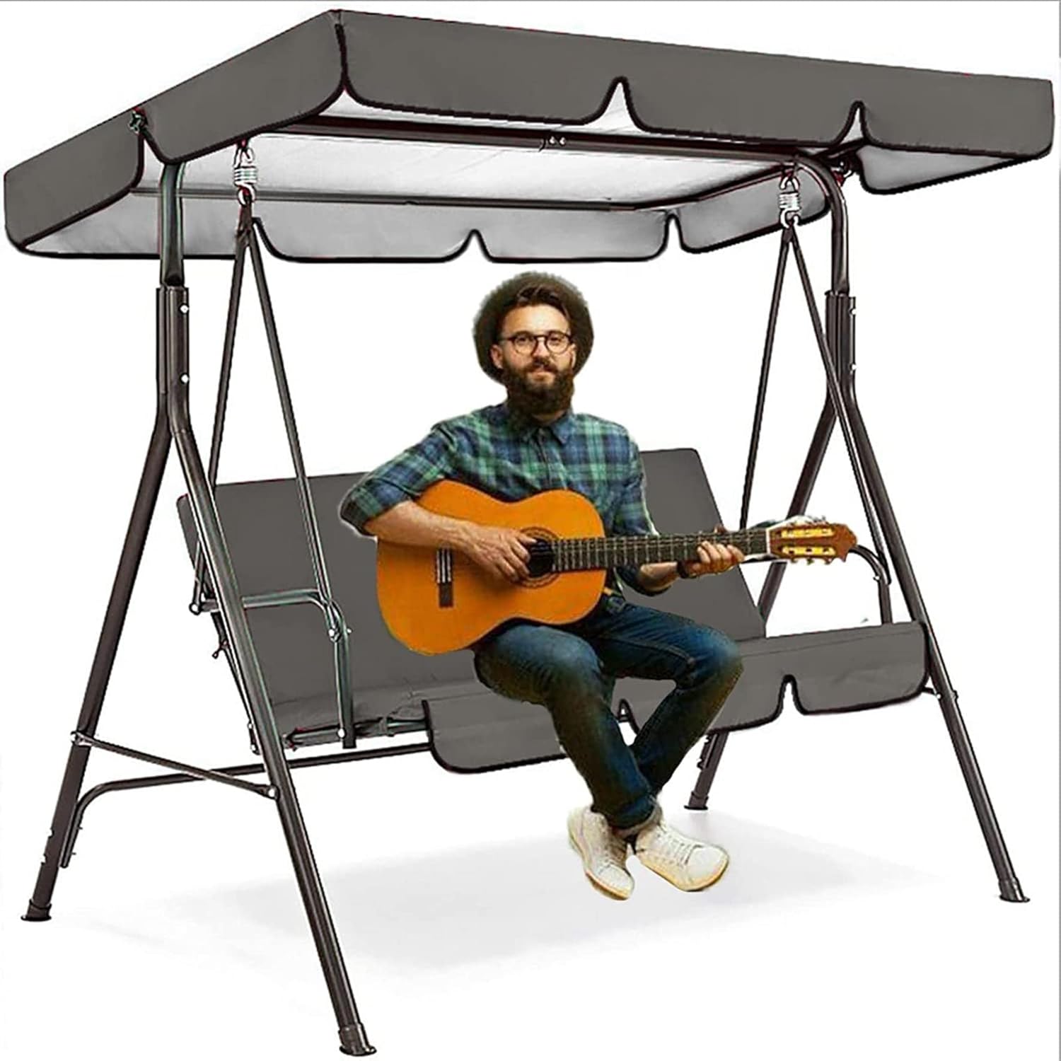 Patio Swing Canopy Replacement Top Cover, Replacement Cover for Swing Canopy, Garden Seater Sun Shade Treasures Porch Swing Hammock Protector Furniture Cover♛ Features:● Effective harmful Sun ray blocking & water repellent.● High-quality and durable 210D silver coated oxford cloth.● Durable reinforced corners.● Additional graceful scalloped edge.♛ Specification:- Name: Replacement Canopy for Swing Seat and Swing Cushion Cover- Material: Waterproof 210D silver coated oxford cloth- Color: Black, Gray, Beige, Green, Red, Brown, Blue- Size:Seat cover: 150 * 50 * 10cm / 59.1 * 19.7 * 3.9 inch2-seater: 142 * 120 * 18cm / 55.91 * 47.24 * 7.09 inch3-seater: 164 * 114 * 15cm / 64.57 * 44.88 * 5.91 inch3-seater: 190 * 132 * 15cm / 74.80 * 51.97 * 5.91 inch3-seater: 195 * 125 * 15cm / 76.80 * 49.21 * 5.91 inch3-seater: 249 * 185 * 18cm / 98.03 * 72.83 * 7.09 inch♛ Packing list:1 x Replacement Canopy Top Cover1 x Swing Cushion Cover♛ Note :1.Due to manual measurement, please allow a difference of 1-3 cm.2.Due to different conditions of light and screen, the color of the product may be slightly different from the picture.