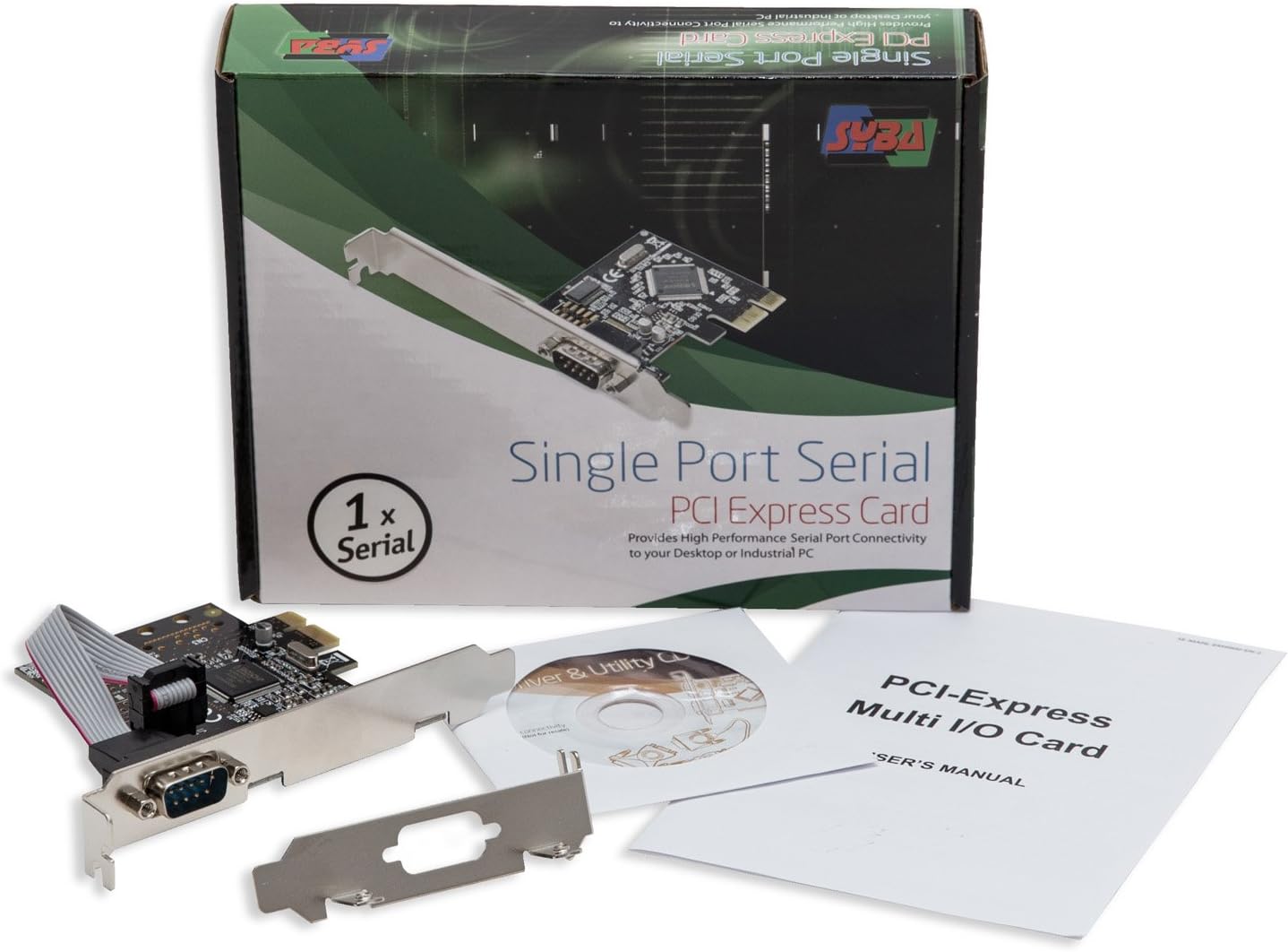 Compliant with PCI-Express Base Specification Revision 1.0a. Using with MCS9904 chipset. Single-Lane (x1) PCI-Express with throughput up to 2.5Gbps. Octopus cable included. Driver support for windows 2000, Server 2003, XP 32/64, Vista 32/64, Linux, Mac, OS operating System. Serial Port (RS-232) Interface. Build-in 16C550 compatible UARTs. 256-Byte deep transmitting and receiving FIFO. Transfer rate up to 250Kbps. Support RS-232 hardware, software flow control. System Requirement: Hardware: Computer with PCI-Express slot