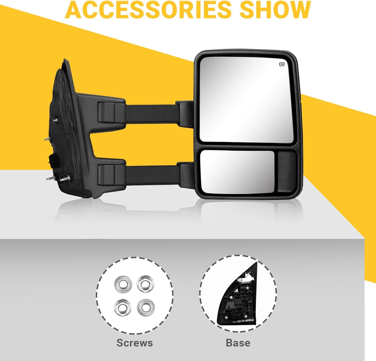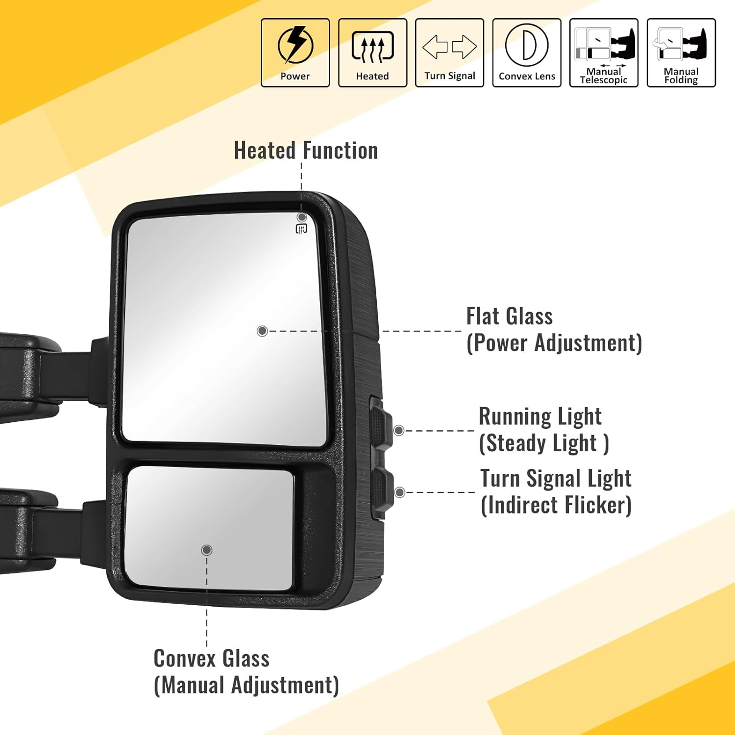 | Model | Towing Mirrors for 99-16 Ford F250 F350 F450 F550 Super Duty and 2000-2005 Ford Excursion |