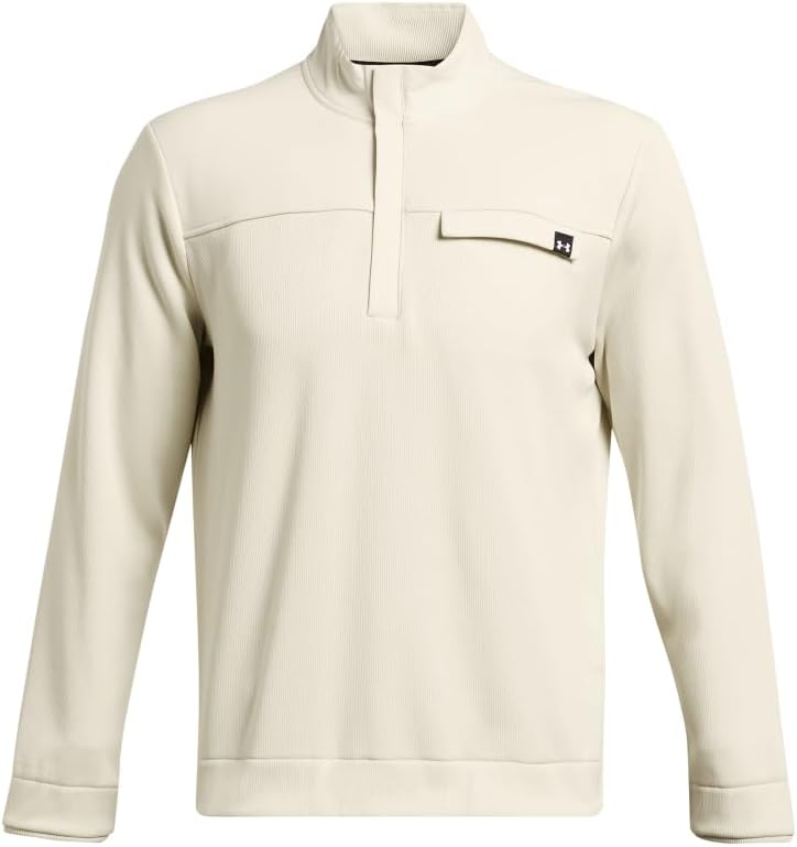 UA Storm technology repels water without sacrificing breathability. SweaterFleece fabric has a soft, brushed interior with stretch for complete mobility. Woven overlays on shoulders & chest pocket for added durability. Drop in chest pocket. ½ zip front makes for easy layering. Banded bottom hem & cuffs. Body: 100% Polyester. Woven: 87% Polyester/13% Elastane. 100% Polyester.