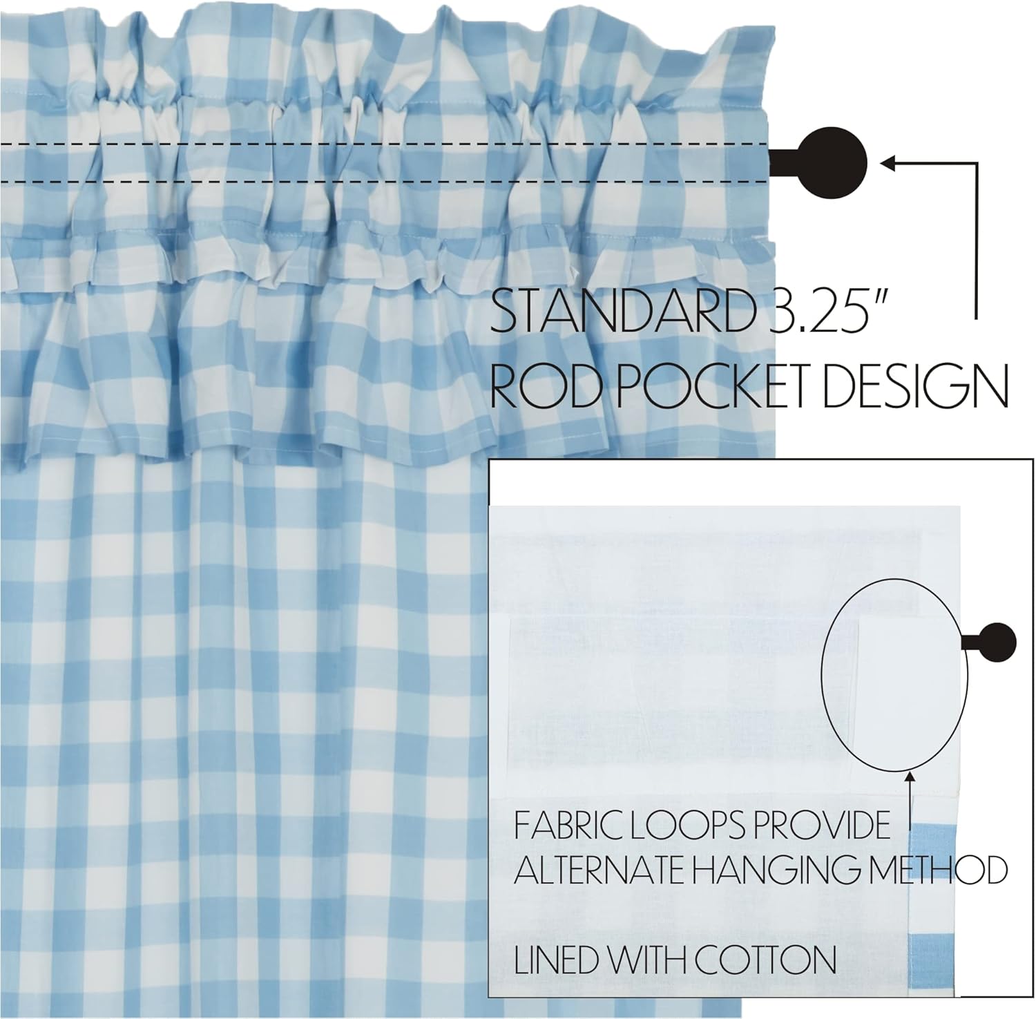 | Model Name | Farmhouse Curtains Annie Buffalo Check Rod Pocket Cotton Drawstring Ties Buffalo Check |