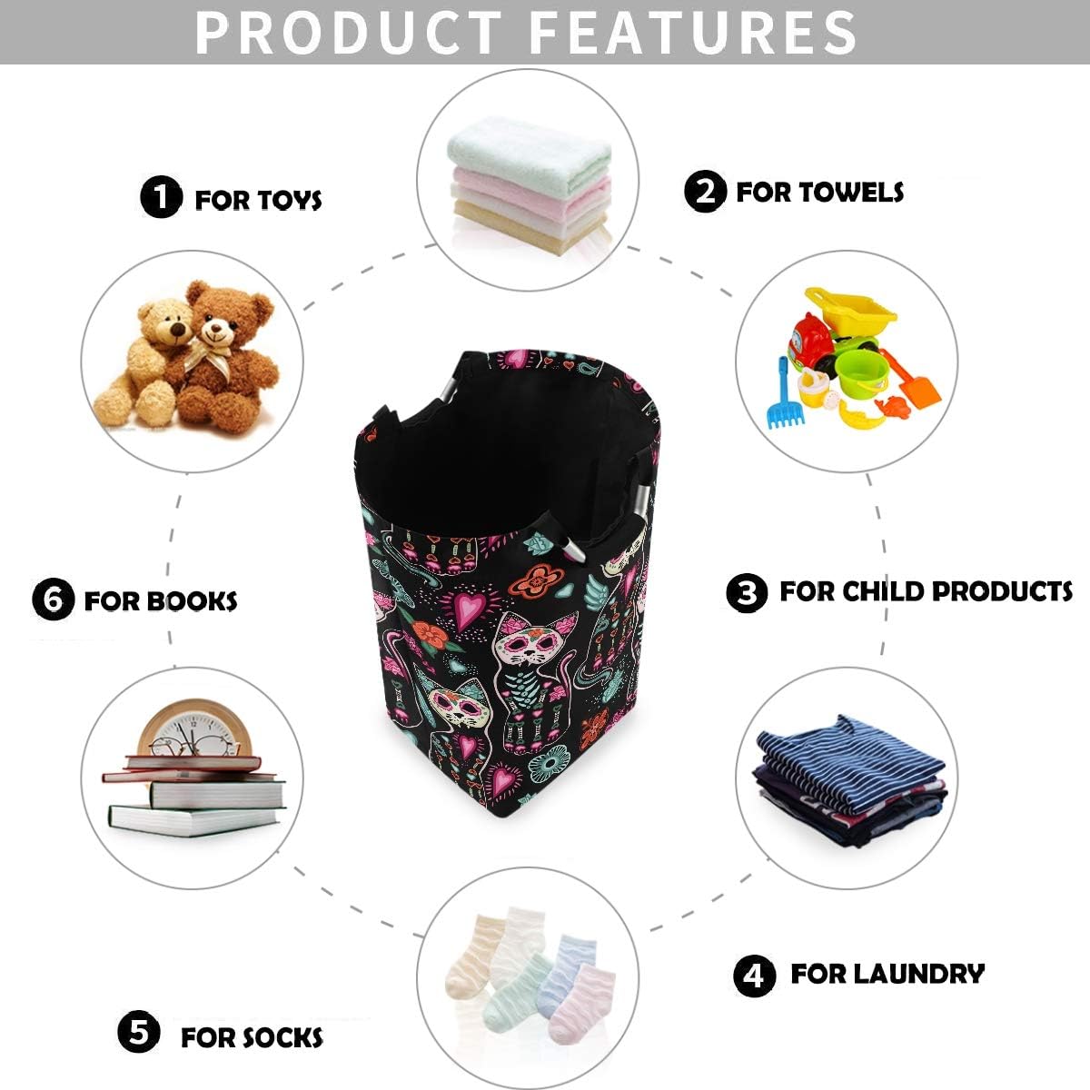 ***BRAND***VISESUNNY means providing the vivid pattern and stylish style for foldable portable Laundry Hamper. At the same time, it also stands for the optimistic attitude and the passion towards life.***ADVENTAGE*** THICK OXFORD MATERIAL ----Made of high quality fabric, lightweight and durable. Waterproof PE coating inner, which to achieve the effect of moisture resistant. Exquisite workmanip, let customers experience better products. Help to keep shape.Besides, black interior is dirt-proof.LARGE CAPACITY ---- This laundry hamper can hold plenty of laundry,suitable for 3 to 6 people.It can store clothes, towels, socks, toy puppets, books, shoes, snacks and other sundries for home dorm and travel.MULTIFUNCTIONS ---- Our laundry hamper can be used as clothes bags to store dirty clothes, Washing bin and shopping bags to store all kinds of sundries. Besides, It can as Home Textiles Storage, Toy Storage, Toy bin,Toy box ,Kid's hamper, Laundry Basket,Baby Product's Storage and Pet Product's Storage.STRONGER HANDLES ---- Handles are designed with reinforced connection, so that they won't break when you lift the laundry hamper.GREAT GIFT ---- Fashion personalized design will be a gift for women, men, boys, girls and kids, perfect for nursery, home office, craft room or laundry basket. It not only helps you and your friends enjoy using the storage baskets but also can be as a better home decor.***WASHING TIPS***Wipe clean only, do not use abrasive cleaner.Do not use washing machine to clean the bag, it will damage the waterproof coating.