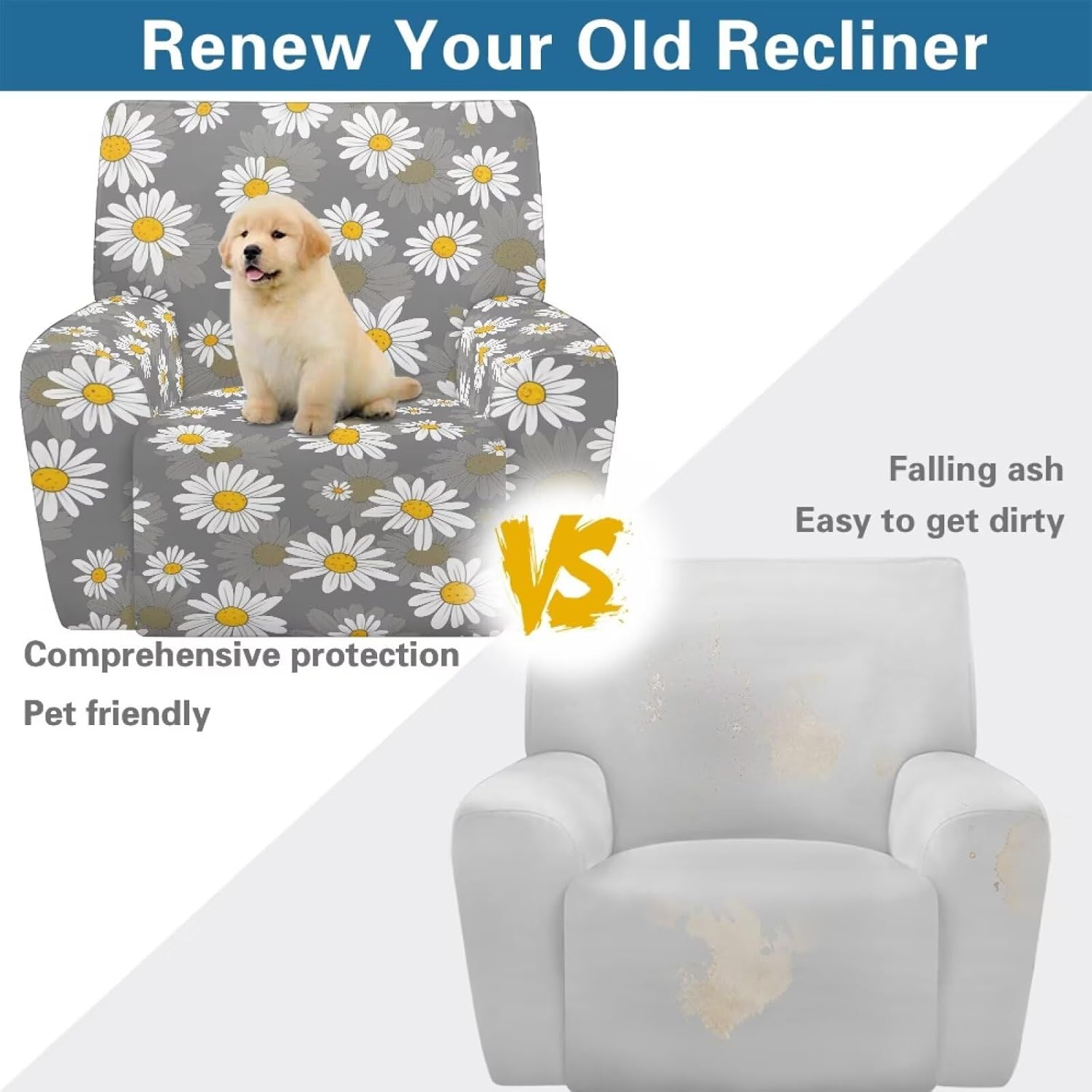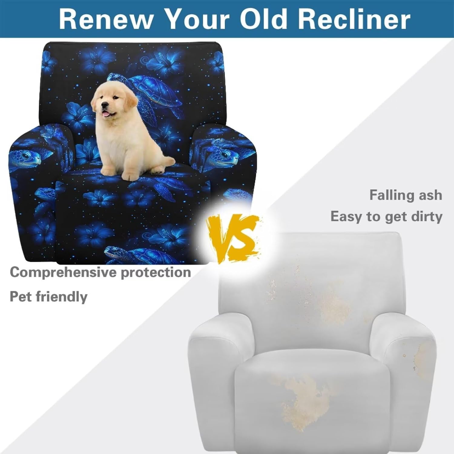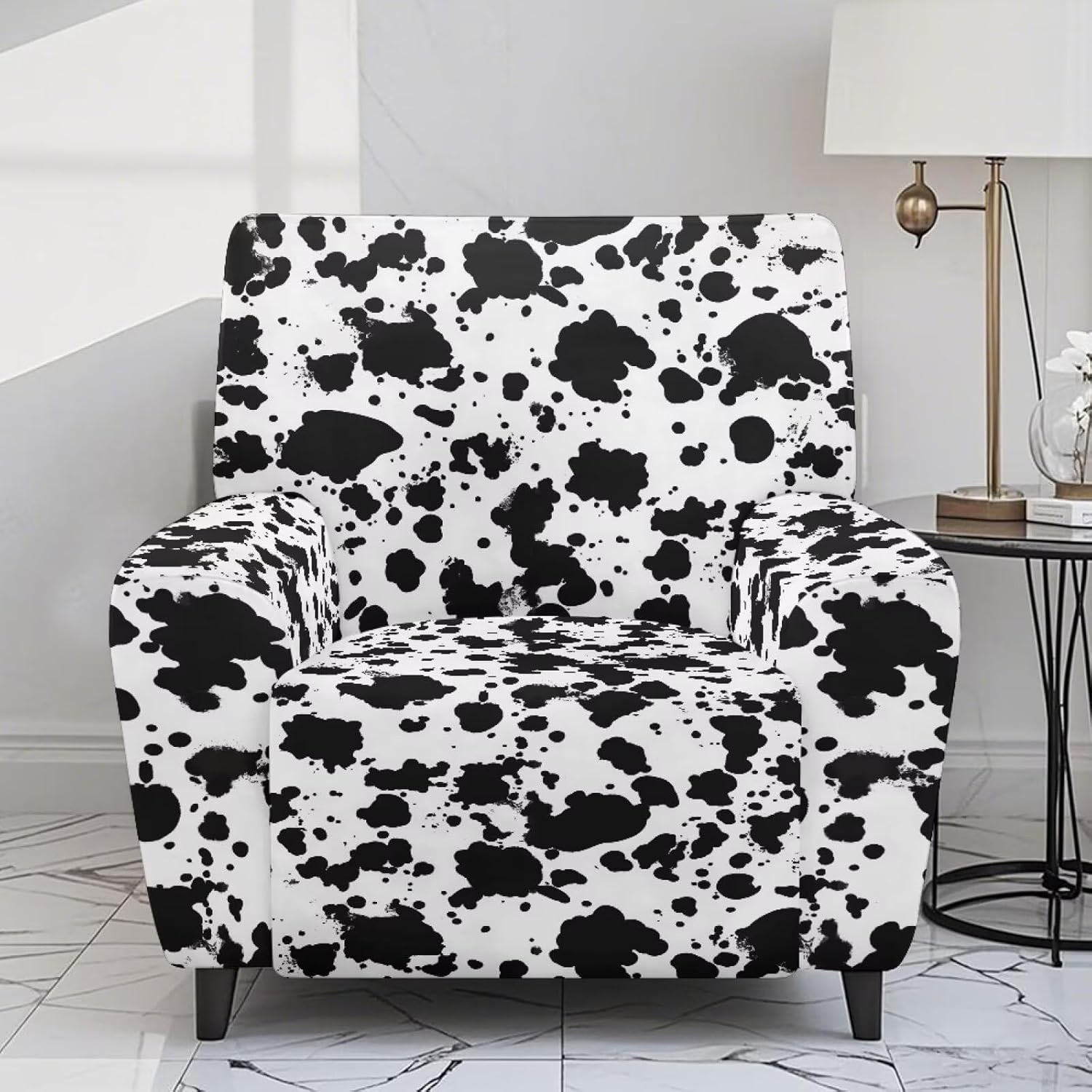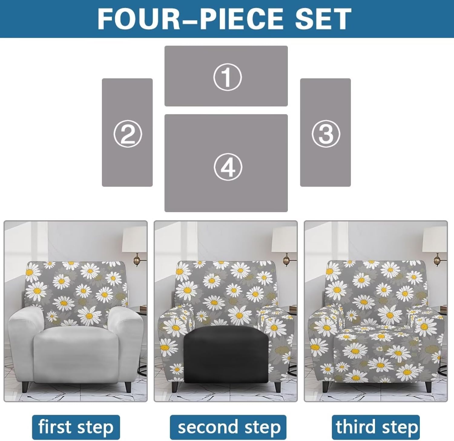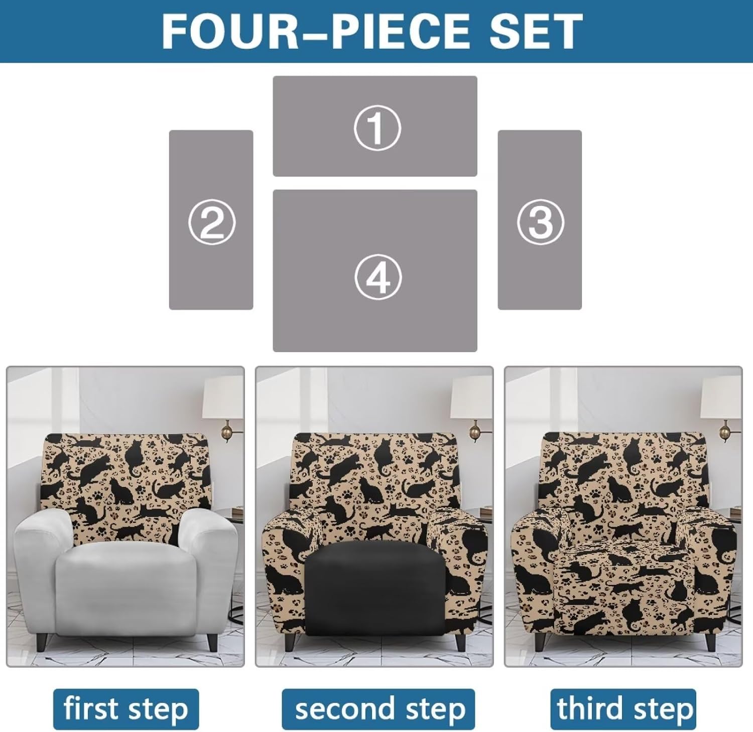 Transform and protect your recliner with our Premium Recliner Chair Cover, designed for comfort, style, and practicality. Made from a soft polyester and spandex blend, this highly elastic fabric ensures a snug fit while being wrinkle-resistant for long-term durability. Our covers are designed to fit most recliners, accommodating rest area widths of 23-35", backrests 27-37" wide and 17-22" high, and armrests 26-35" long and 20-29" high. Be sure to measure your recliner for a perfect fit. Not only do these covers provide complete protection from stains, pet scratches, and accidental spills, but they also revitalize old recliners and safeguard new ones. The elastic straps and reinforced bottom keep the cover securely in place, even with daily use. Plus, the large side pockets are perfect for storing remotes, glasses, books, and more to keep your space tidy. This 4-piece set includes a backrest cover, seat cover, and two armrest covers. Available in a variety of stylish prints, our reclining covers add a pop of color and elegance to any living room. Upgrade your recliner today with our functional and fashionable covers!