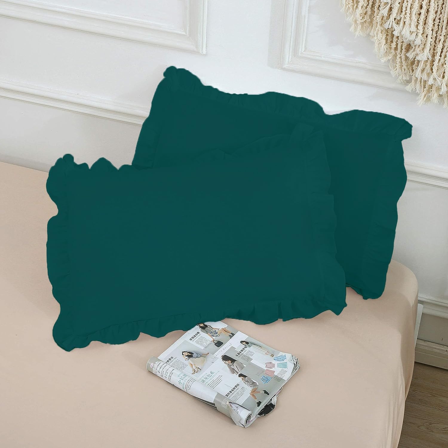 | Item model number | Saferay Green Ruffled Pillow Shams Set |