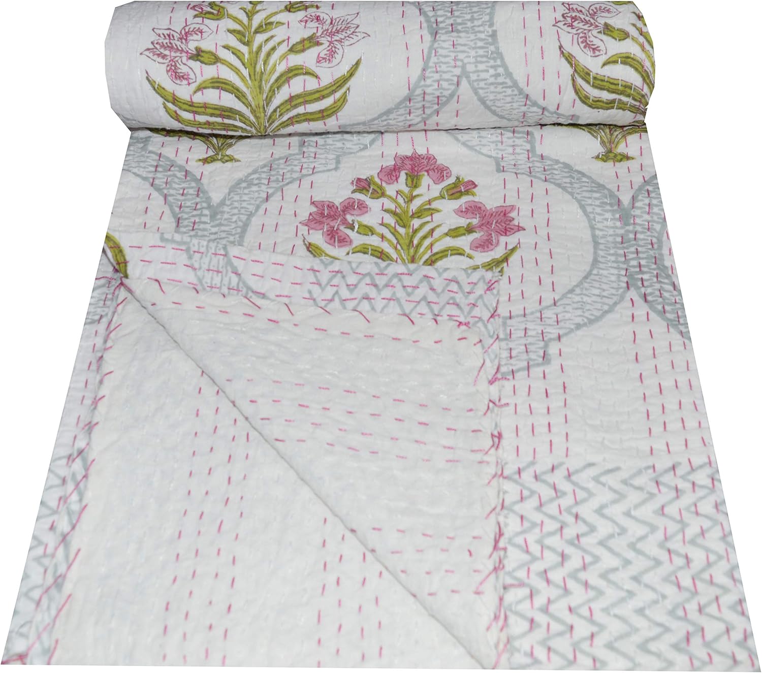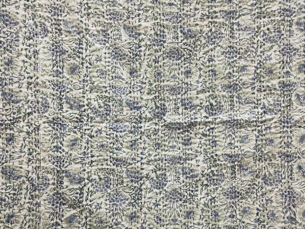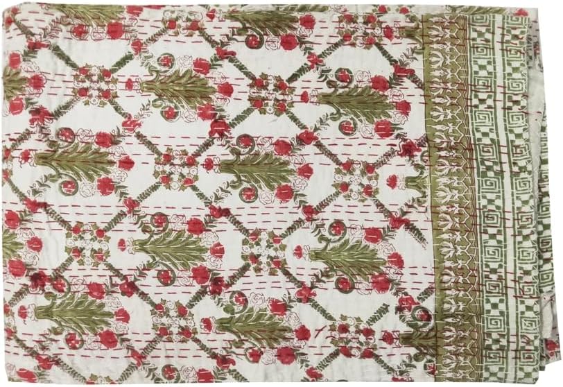 Yuvancrafts Indian Handmade Cotton Kantha Quilt Traditional Block Print Twin And Queen Quilt Blanket Bedspreads Throw